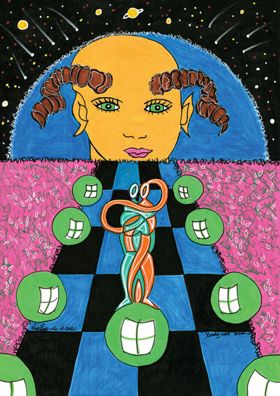 Dessin original A3 Papier Bristol 230/m2 : 230 €. Reproduction A3 : 30€.Reproduction A4 encadrée : 45€ Carte postale 5€ -2023 29.7cmx42cm